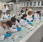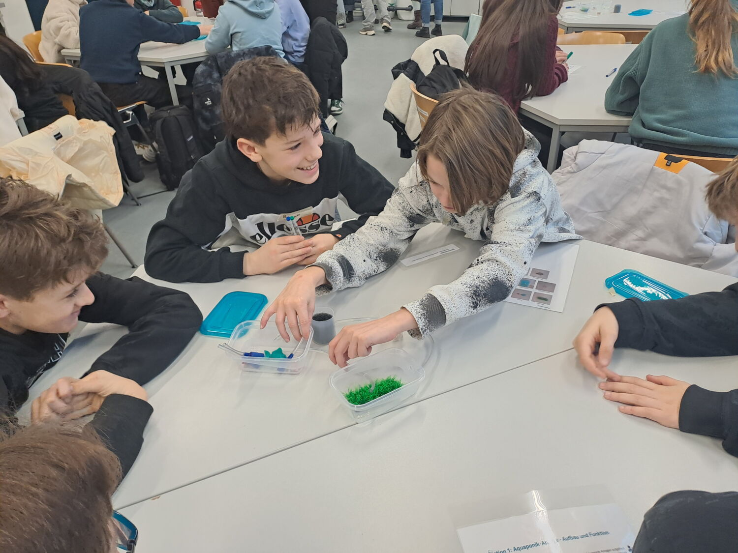 In vier abwechslungsreichen Workshops und Experimentierstationen setzten sie sich intensiv mit dieser nachhaltigen Form der Lebensmittelproduktion auseinander. Zunächst lernten die Teilnehmenden den Aufbau einer Aquaponik-Anlage modellhaft kennen und erfuhren, wie Fischzucht und Pflanzenanbau in einem geschlossenen Kreislaufsystem miteinander verbunden sind. Anschließend wurde die Funktionsweise genauer untersucht: Wie Nährstoffe entstehen, wie Wasser zirkuliert und welche technischen Komponenten dafür notwenig sind.