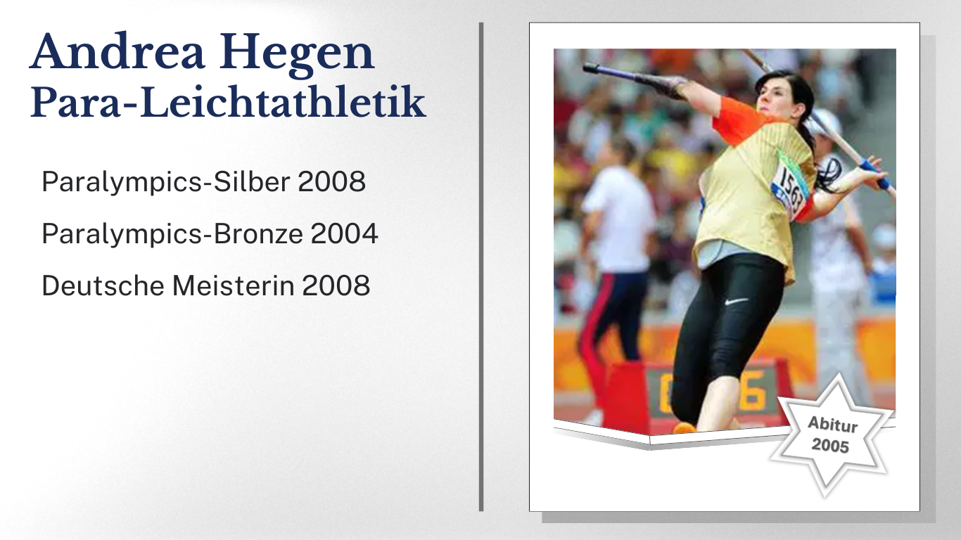 - Die bewusste, selbstständige und eigenverantwortliche Persönlichkeitsbildung wird als Grundlage für den größtmöglichen sportlichen als auch schulischen Erfolg (Abitur) verstanden.